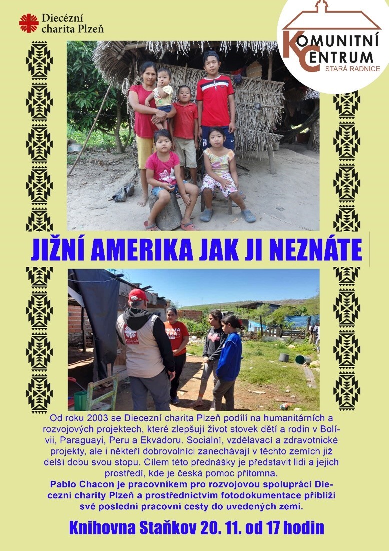 Srdečně Vás zveme na inspirativní besedu s Pablem Chacónem, vedoucím humanitárních a rozvojových projektů Diecézní charity Plzeň, která se uskuteční 20. listopadu 2025 v knihovně ve Stankově.
