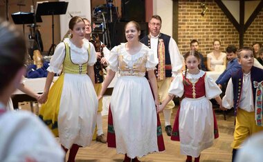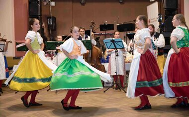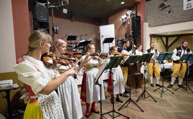 O hudbu k tanci se postarala všestranná kapela Epigon, která se střídala s nádhernými choreografiemi dětského folklorního souboru Šumavánek doprovázeného lidovou hudbou souboru Šumava a dalšími dudáky a tanečníky z Domažlic. Ples vyvrcholil předáváním cen výhercům tomboly.