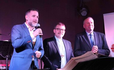 Ples zahajovaly proslovy ředitele Diecézní charity Plzeň Jiřího Lodra, biskupa plzeňského Tomáše Holuba a hejtmana Plzeňského kraje Rudolfa Špotáka. Následovala řeč Pabla Chacóna Gila, vedoucího Střediska rozvojové spolupráce, který se nedávno vrátil z inspekční cesty po státech Jižní Ameriky, kde se setkával s našimi partnerskými organizacemi i jejich klienty. Přivezl odtud také dvě videoblahopřání ke kulatému výročí diecézní charity, a to od kardinála Adalberta Martinéze Florese z Paraguaye a Mons. Miguela Ángela Cadenase z vikariátu Iquitos v Peru.