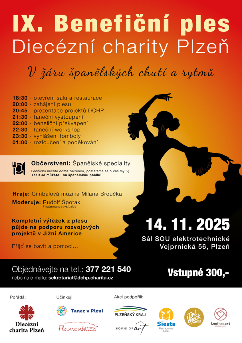 Připravte si kastaněty, vytáhněte volány ze skříně a pojďme se společně poradovat ve španělské atmosféře a zároveň podpořit rozvojové projekty Diecézní charity Plzeň v Jižní Americe.