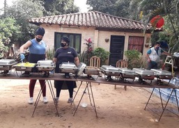 Výdej obědů chudým v Paraguayi