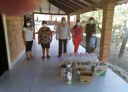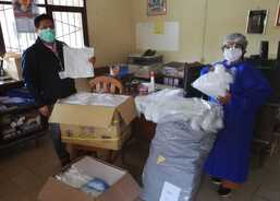 Fotografie pořízených ochranných pomůcek a dezinfekce z daru DCHP, Pastorační a sociální charita Beni, město Trinidad. Foto: Rosmary Lladó, červenec 2020.