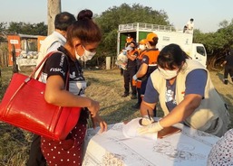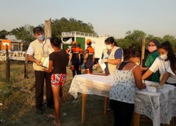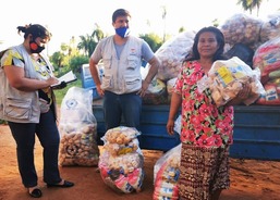 Výdej balíčků potravinové pomoci, Pastorační a sociální charita Asunción, město Asunción. Foto: Gloria Yegros, červenec 2020.